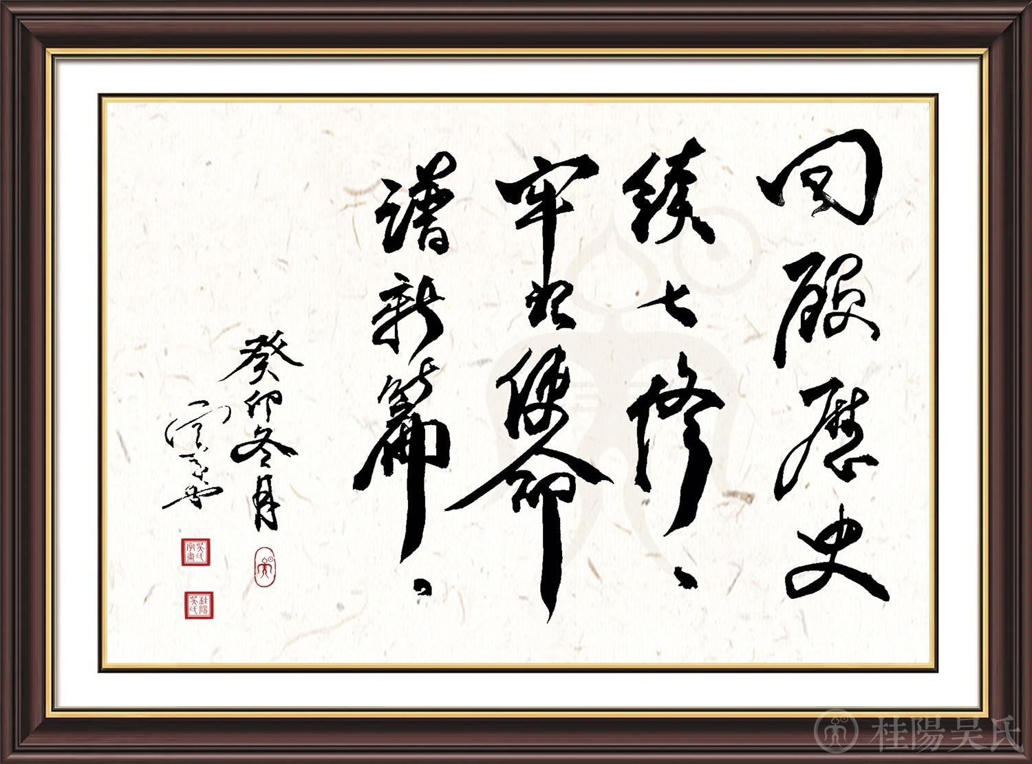 祖先神位“延陵郡吴氏门中一脉宗亲历代考妣先祖之神位”,对联:“祖德流芳思木本;宗功浩大想水源。”